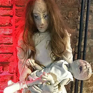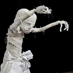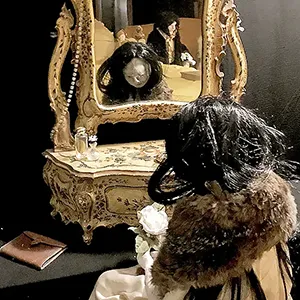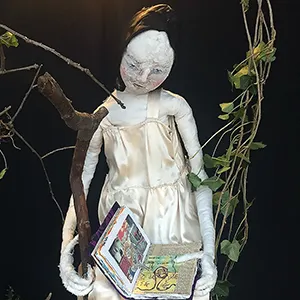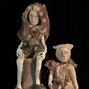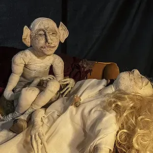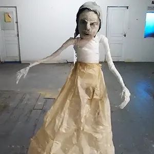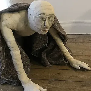 The puppet-like sculpture lends itself to installation within theatrical ‘sets’, using furniture and props to create a dramatic other world.